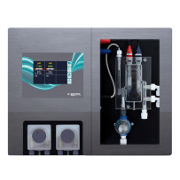 D'abord, Pool Manager Pro mesure avec une très grande précision le niveau de pH, de chlore libre (via sonde potentiostatique) et la température de l'eau. Pour le pH et le chlore, le système ajuste automatiquement la quantité de produits nécessaires (double pompe doseuse pH et chlore liquide). Le tout via sa chambre d'analyse et d'injection intégrée au coffret.